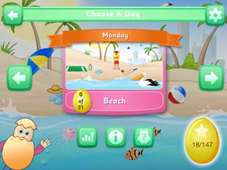 Eggy Vocabulary takes your child through 7 action-packed days of the week, with each day presenting a fun new destination to explore, including the Zoo, Museum, Mountains, School, Beach, Toy Shop and Playground.